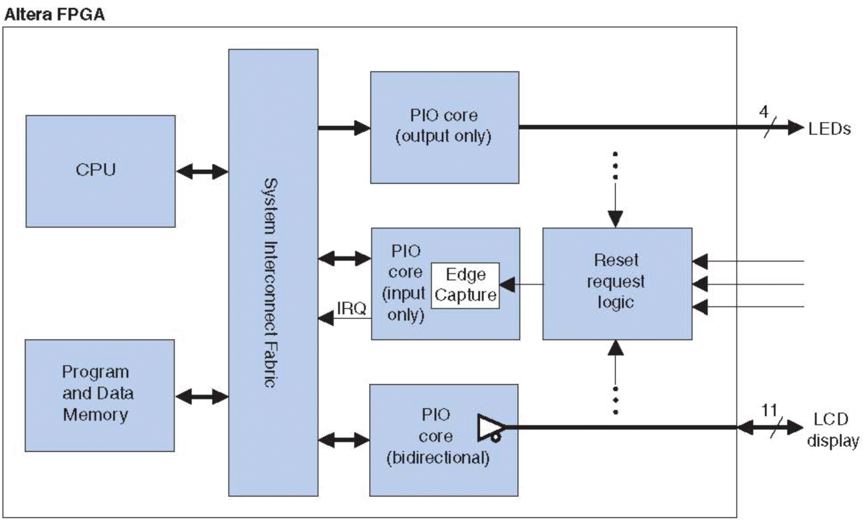 Figure 11–2 shows a block diagram of the PIO core configured with input and output ports, as well as support for IRQs.