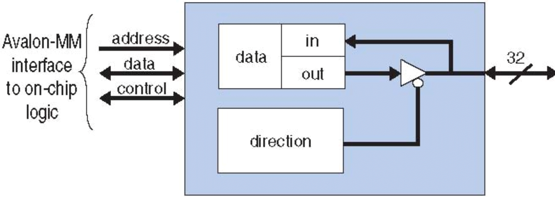 Figure 11–3 shows a block diagram of the PIO core configured in bidirectional mode, without support for IRQs.